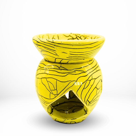 Brûleur d’Huile Parfumée en Céramique Jaune – Fabrication Artisanale à Marrakech